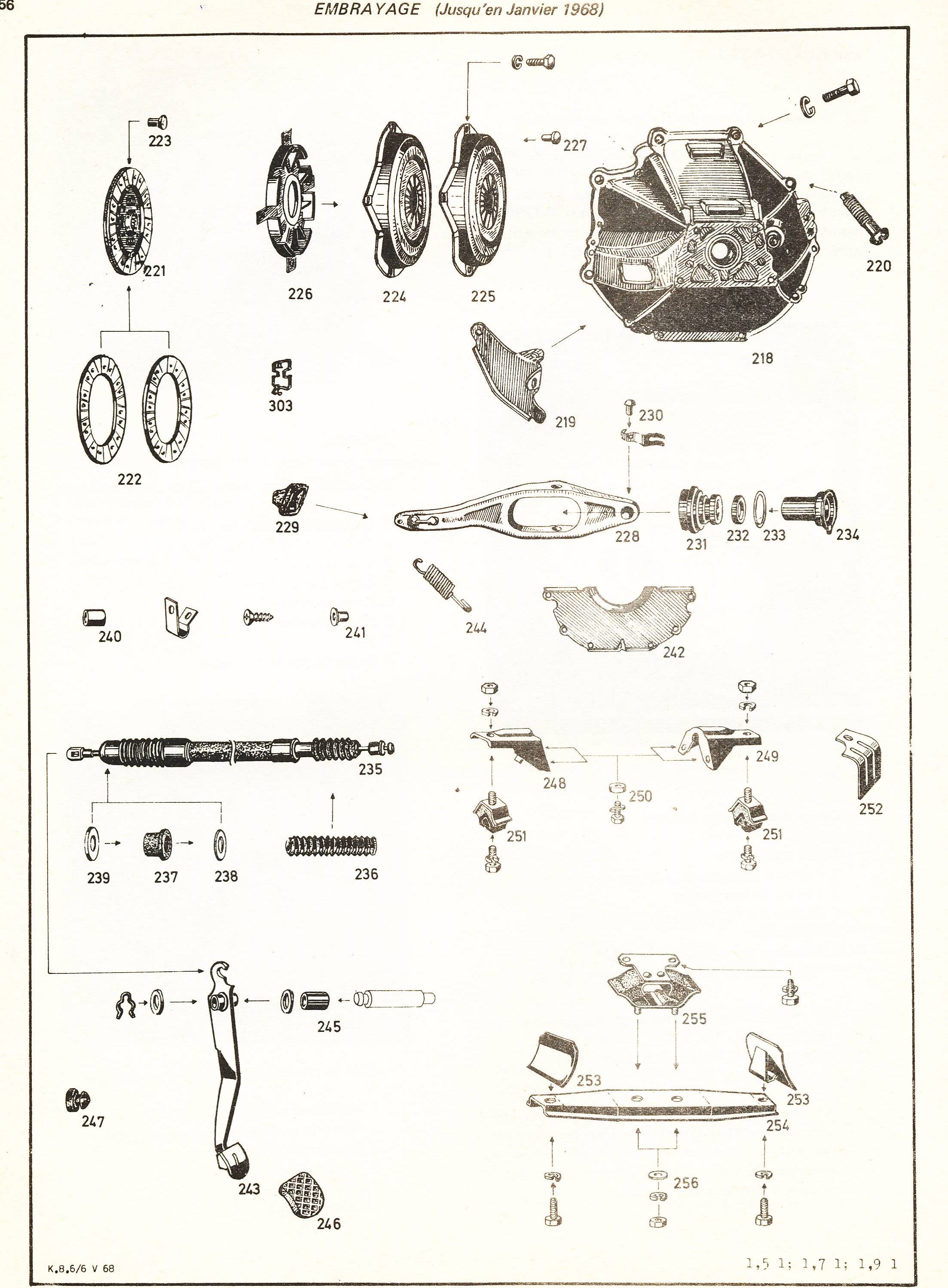 Pièces constituant l'embrayage du moteur OHV.