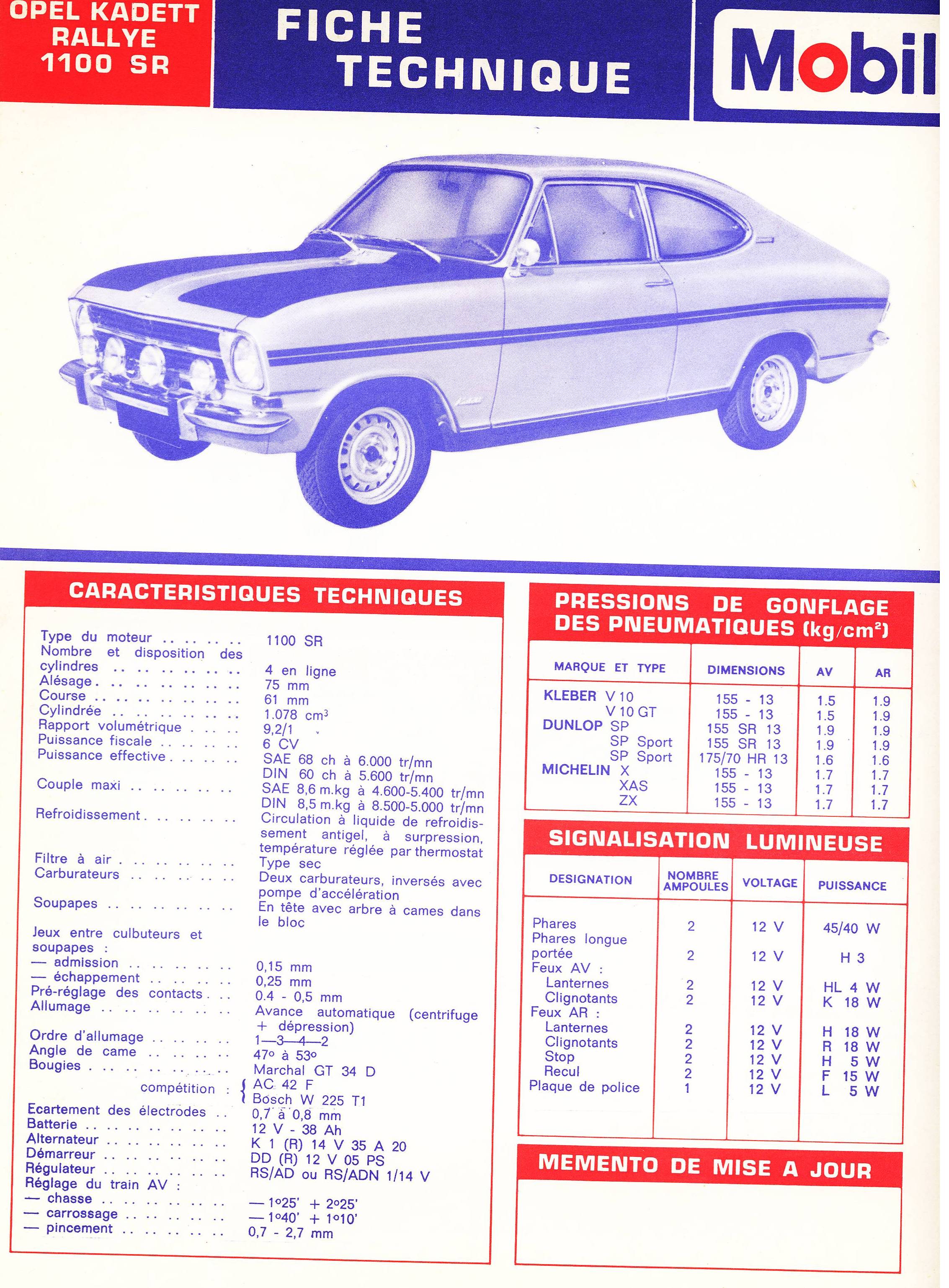 Vous trouverez ici les fiches techniques des opel kadett b rallye